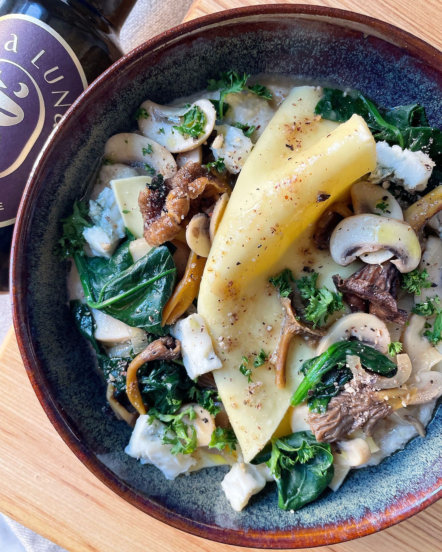 Gourmande et réconfortante, cette recette savoureuse de pâtes aux champignons et gorgonzola sublimée par l'huile d'olives maturées comblera tous les gourmets !